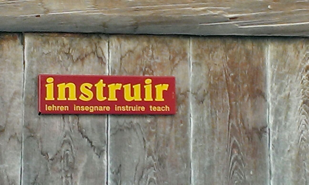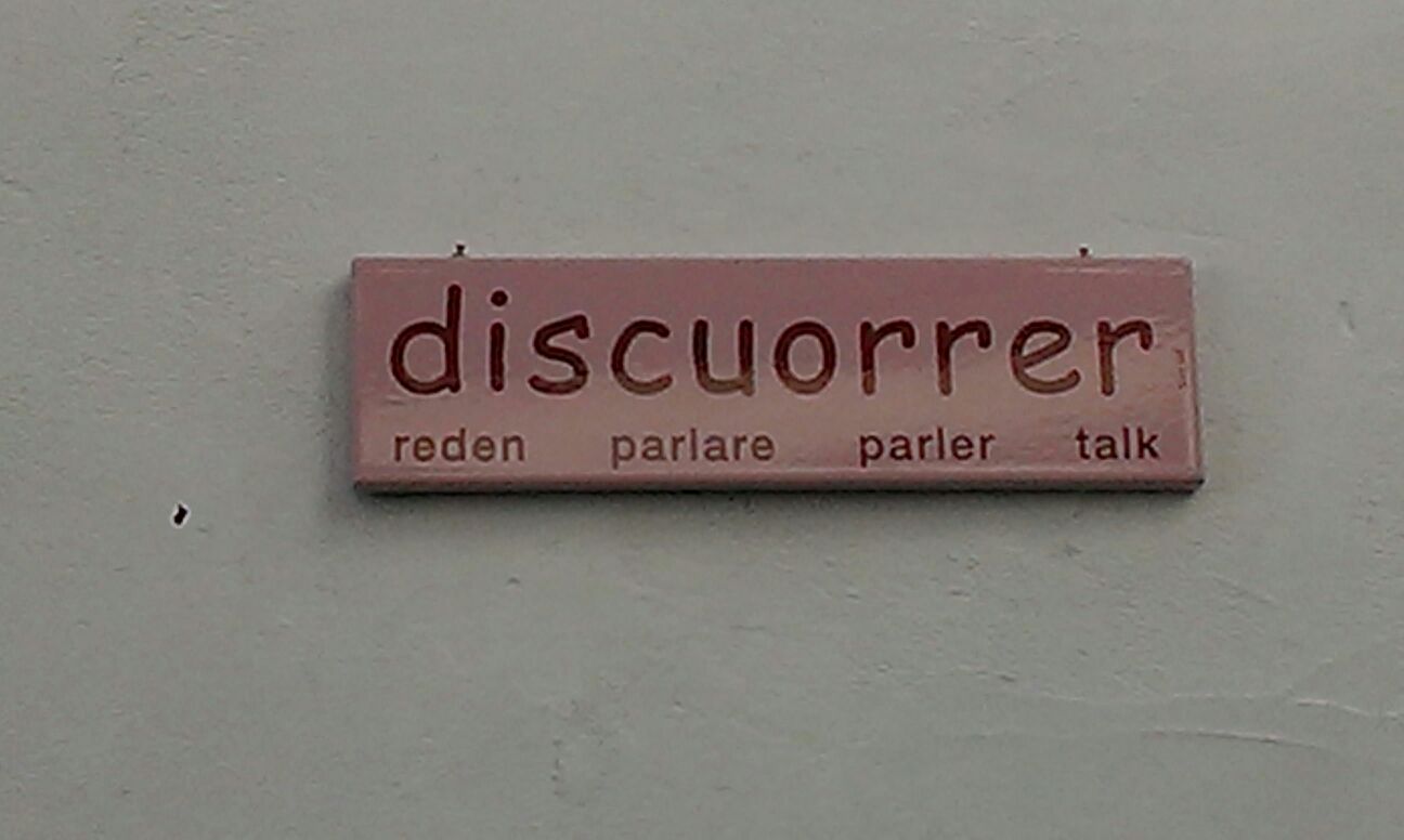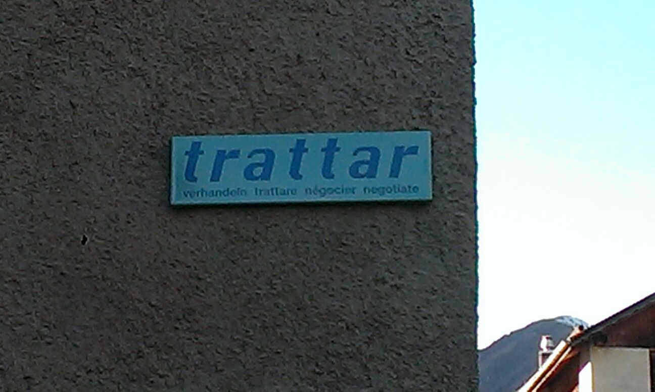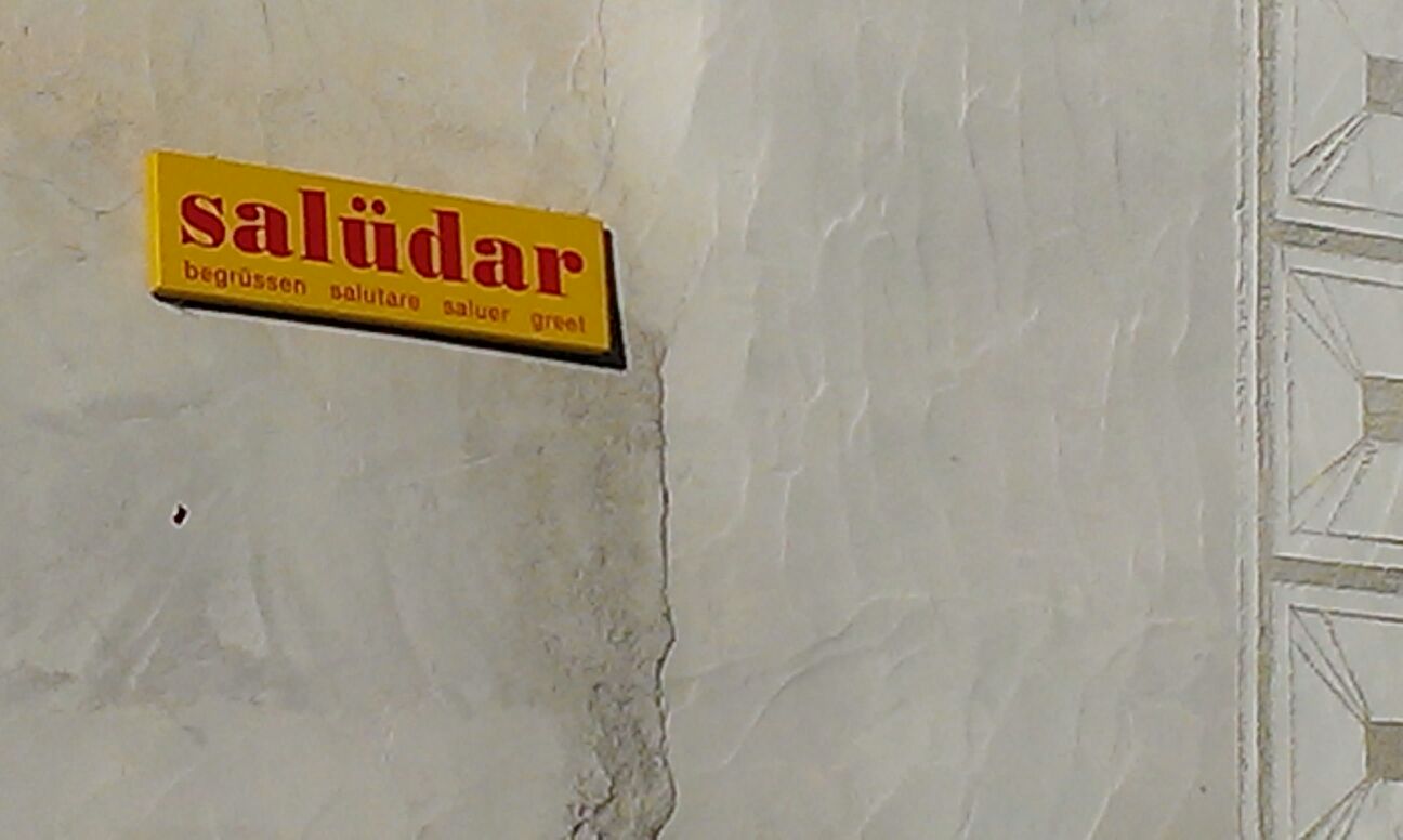 In de app Language lover’s guide to Europe heb ik het kleine Zwitserse plaatsje Vnà opgenomen vanwege een lexicografische bijzonderheid. De inwoners van het dorpje, waar een Reto-Romaans dialect de voertaal is, hebben er een openluchtwoordenboek gecreëerd door op hun huizen bordjes te bevestigen met woorden uit hun taal, inclusief vier vertalingen. Een vriend van me is daar nu en stuurt me net zes foto’s uit Vnà.