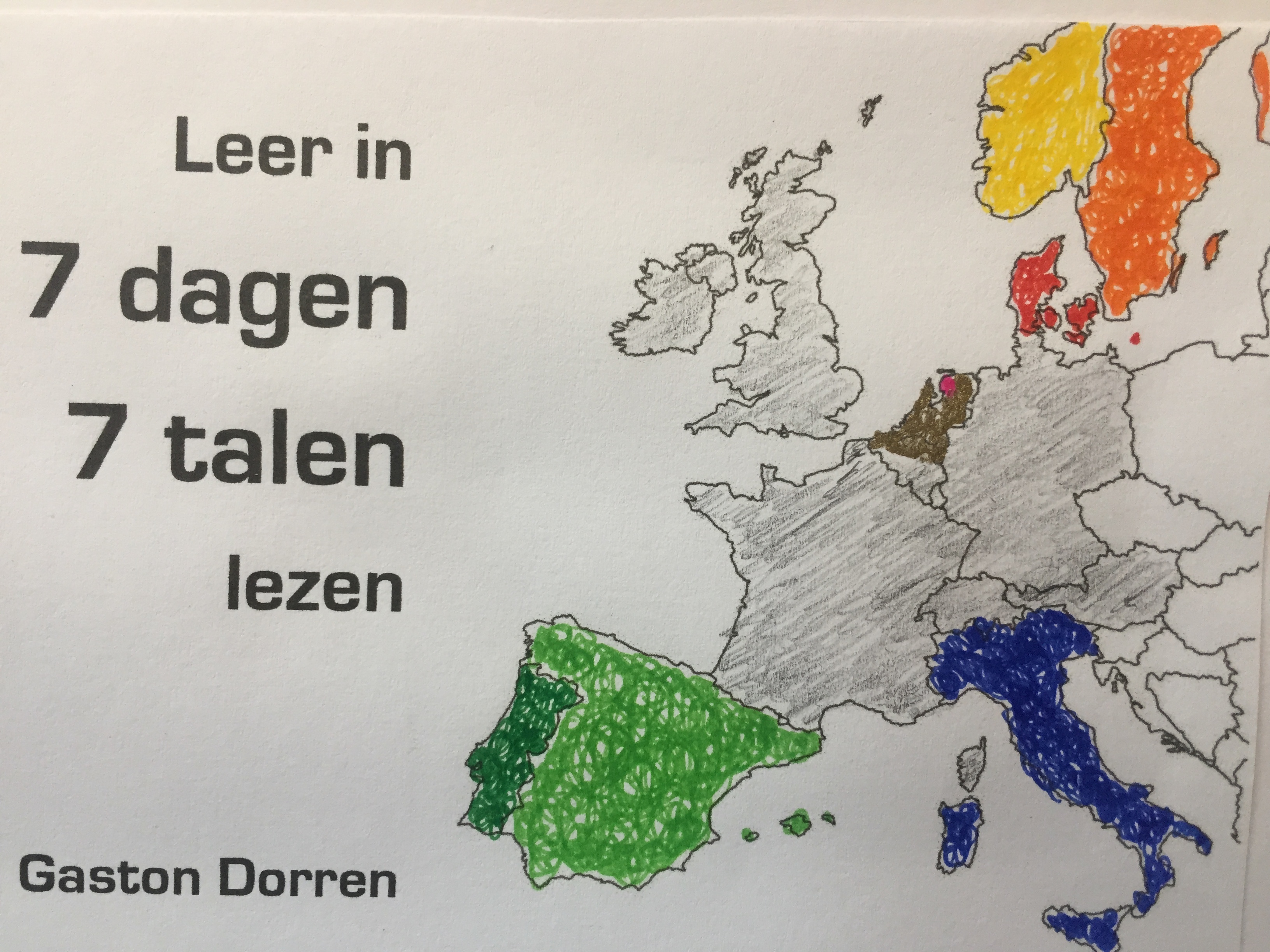 Hoe het boek gaat heten, heb je al gezien op het zelfgefröbelde omslag: Leer in 7 dagen 7 talen lezen. Die titel dekt de lading nauwkeurig. Het uitgangspunt is dat de meeste Nederlandstaligen vrij goed Engels spreken en dat miljoenen van ons op zijn minst wat school- en vakantie-Frans en -Duits in huis hebben. We mogen dat graag relativeren, maar vergeleken met veel andere Europeanen zijn we nog steeds behoorlijk veeltalig. Ben jij behoorlijk veeltalig.