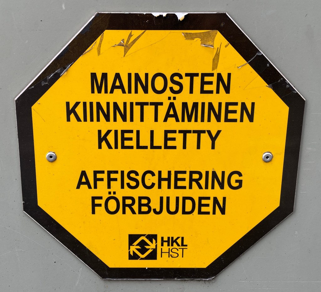 Dat ik hier ben, heeft te maken met een boek waar ik nog aan werk, en dat ook nog lang niet af is. Maar intussen ben ik erg blij dat ik dankzij mijn vorige boek weet wat ik met al dat geschreven Zweeds aanmoet. Want hier in Helsinki (Zweedse naam: Helsingfors) zijn alle officiële opschriften niet alleen in het Fins, maar ook in het Zweeds, een van de zeven talen die het boek ontsluit. Ook de verpakkingen in de supermarkt zijn tweetalig, met het Fins doorgaans in grote letters en het Zweeds in kleinere. Dat bespaart me erg veel tijd en rompslomp; ik hoef het vertaalappje maar een enkele keer te voorschijn te halen. En zeker, de Finnen spreken prima Engels, maar het aantal Engelstalige opschriften is buiten de toeristische hotspots beperkt. Dus Zweeds is hartstikke handig.