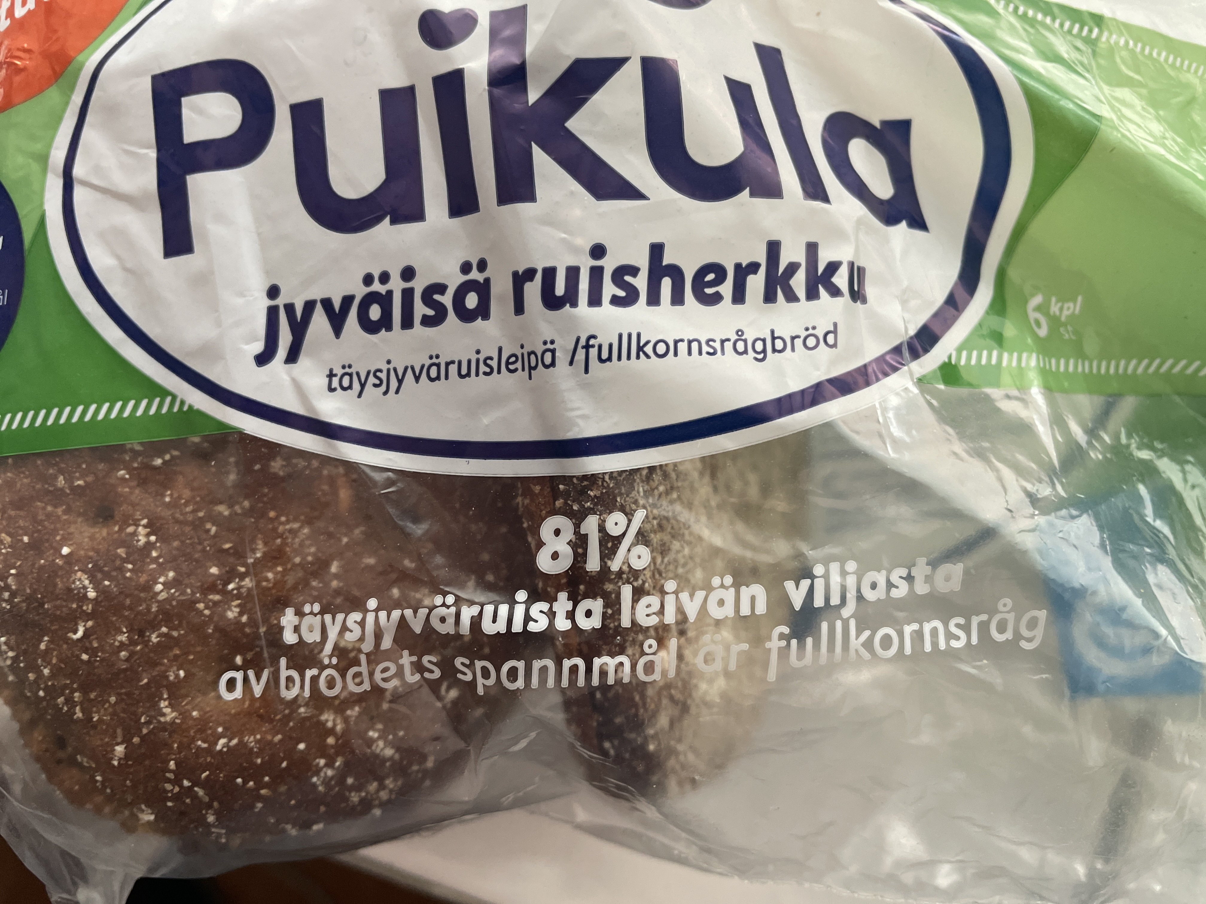 Met täysjyväruisleipä kan ik heel weinig aanvangen. Maar fullkornsrĂĄgbröd is niet moeilijk: full-korns-rĂĄg-bröd oftewel ‘vol-koren-rogge-brood’. Bingo! (Grappig genoeg komen het Finse ruis voor ‘rogge’ en leipä voor brood – vgl. Engels loaf, Duits Laib – allebei uit het Germaans. Maar ik zie het er niet aan af.)