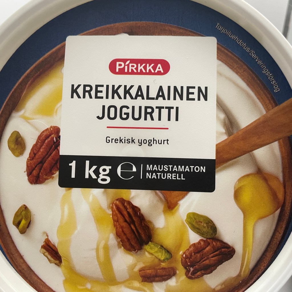 De tweede regel is makkelijk, zelfs in het Fins: jogurtti. Maar wat mag kreikkalainen zijn? Ah, Grekisk – ‘Grieks’. In het Fins ga je het pas zien als je het doorhebt. De Finnen maken van g’s graag een k, is me al opgevallen: door de kaasu-leidingen stroomt geen (smelt)kaas, maar gas. En -lainen zag ik ook bij hampurilainen (‘hamburger’), dus dat zal op een herkomst duiden. Maar goed, dat Finse woord hóéf ik dus niet te snappen, want het Zweeds helpt me al uit de brand. En o ja, de toevoeging naturell is heel informatief, in tegenstelling tot maustamaton. Ik vreesde eigenlijk dat er nootjes en honing in de yoghurt zaten, maar nee, dat is maar een tarjoiluehdotus (rechts boven). Een wát? Een serveringsförslag. Echt, hoe meer Fins je ziet, des te meer gaat het Zweeds op Nederlands en Duits lijken.